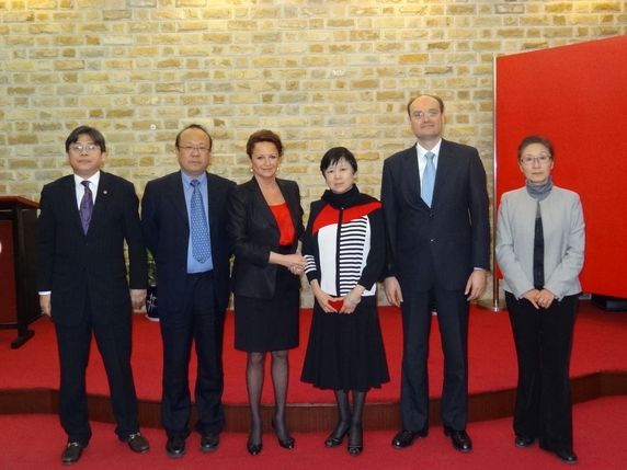 4月12日李小林会长在我会宴请法国旗帜基金会主席马尚·贝莱女士。